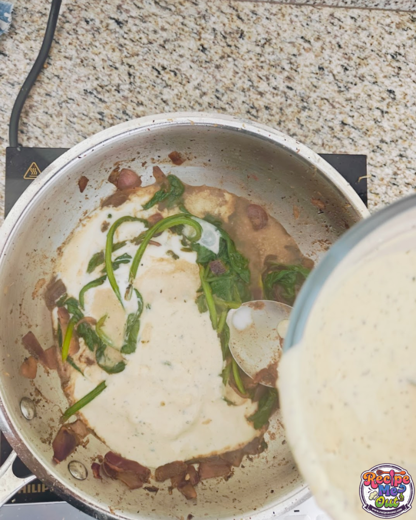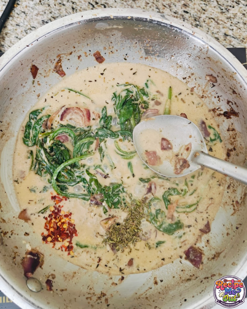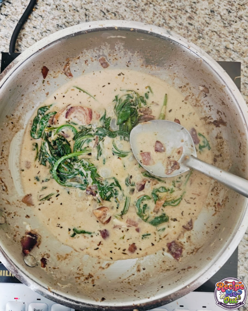 • Alfredo Sauce – The heart of the dish; gives richness, creaminess, and classic Alfredo flavor to coat the spinach beautifully.