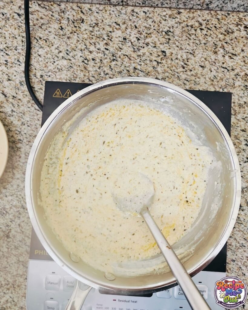 You need to make the Alfredo Sauce first. I already made the alfredo sauce a day before and stored it.