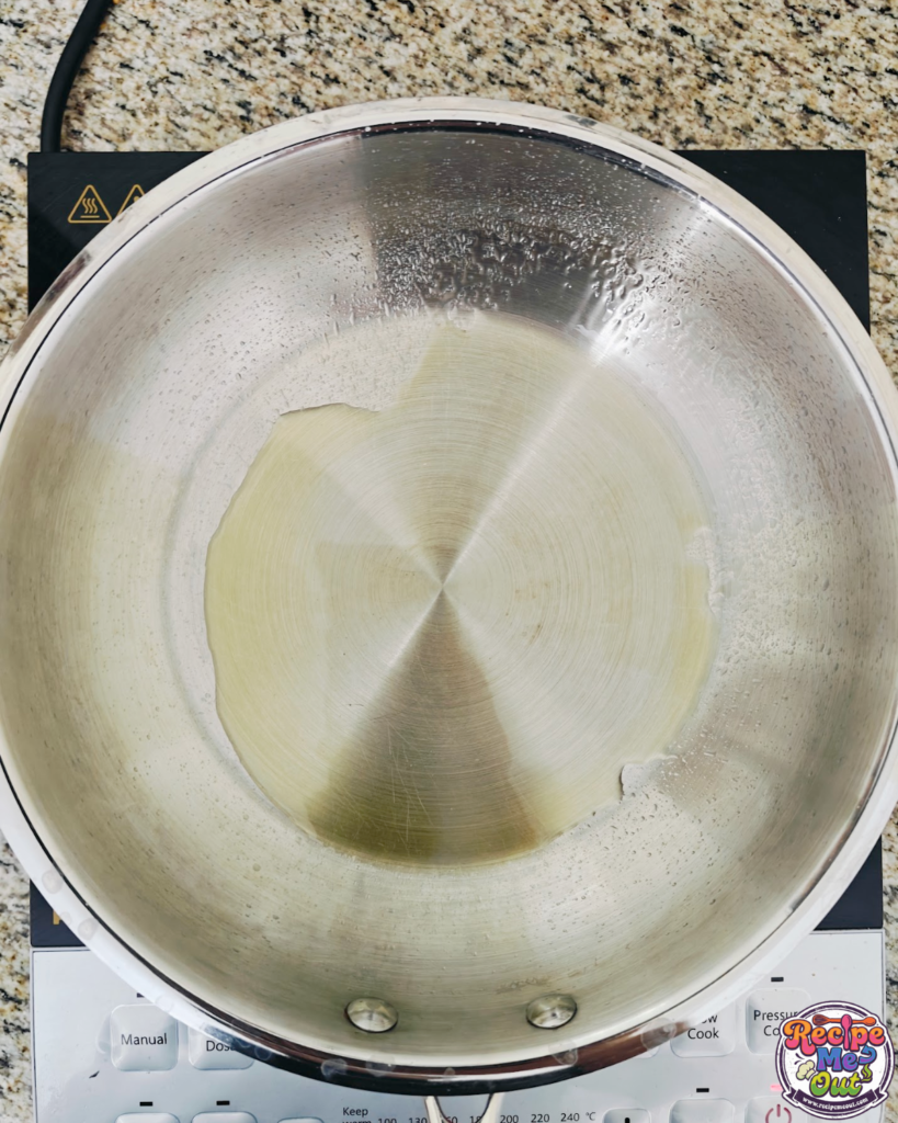 Now, Place a pan on medium heat and add olive oil (or the oil of your choice). Allow the oil to warm up gently; it should be hot enough to release aromas but not smoking.