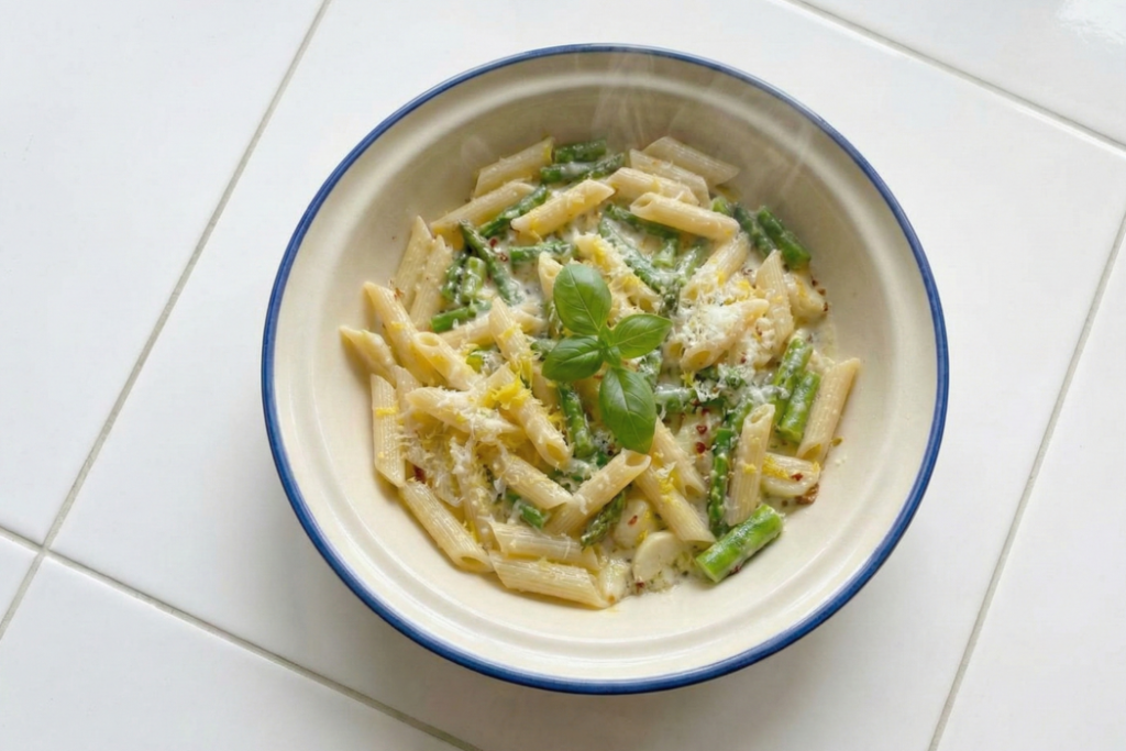 If you’re anything like me, some days you want a bowl of pasta that feels comforting and cozy… but not heavy. You want something that tastes rich and satisfying without needing a nap afterward. That’s exactly where this no-cream asparagus pasta comes in — fresh, light, and secretly luxurious in the best way.